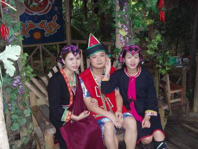商科男兒的優秀讓當地黎族的女孩子一見鐘情,紛紛表示愛意(注:黎族的女孩子摸你的耳朵是表示喜歡你,看來我們這位同事可是艷福不淺,不只是一見鐘情,還一箭雙雕!)
