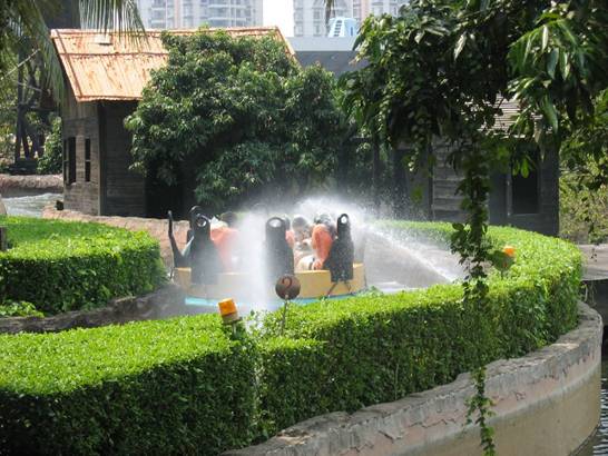 叢林漂流:我們幾位壯士在團團轉的皮艇上慘遭兩支水炮的“蹂躪”,個個變了“落湯雞”