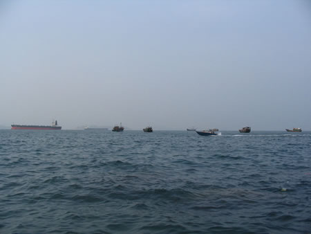 歡呼聲中我們踏上了十一之旅,來到富有豐富人文、歷史景觀的外伶仃島,外伶仃島離香港長洲島只有6海里,主峰伶仃峰高達311.8米,是萬山群島最高峰。站在伶仃峰可清楚的觀望香港的景色(如太平山、青馬大橋等香江景物)。天氣晴朗不起霧的時侯,清晨在山頂等候太陽從大海的地平線上跳出,冉冉升起,整個洋面一片金黃,霞光萬丈,美不勝收,真是一大奇景可惜我們這次沒有看到此景!!!!伶仃洋上最有影響,千古傳誦的是文天祥“人生自古誰無死、留取丹心照汗青”這一千古絕唱。這是毛澤東主席生前手書的文天祥《過伶仃洋》詩的石刻。
