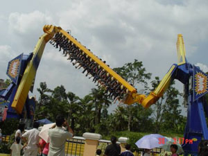 十環過山車 最聲名顯赫的游戲,亞洲首臺、全世界第二臺(僅在英國有一臺)、單項設備投資超過人民幣一億元,打破游樂設備環數最多的世界記錄,并創造了世界吉尼斯記錄。