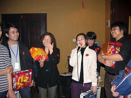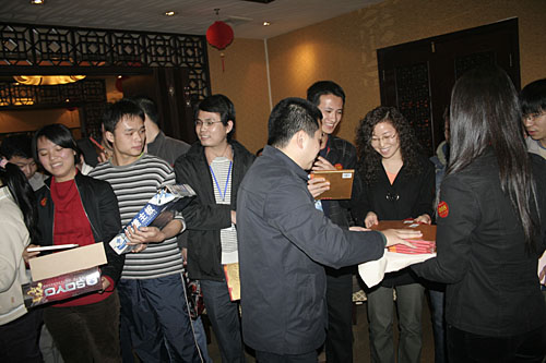 整個大會分為三個部分,第一樂章:2006年優(yōu)秀員工表彰大會;第二樂章:迎春晚會;第三樂章:神秘大抽獎。