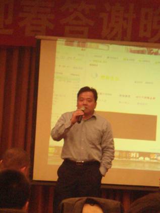 首先是總經理孫武源先生的致辭。回顧2008,展望2009,他表示09年是一個機遇和挑戰并存的一年,在09年,商科要把步伐邁的更大.更穩一些,利用現在的大環境,牢牢的把握這個機會,從逆鏡中擴大公司在行業的影響力,以最好的支持為合作伙伴服務!!