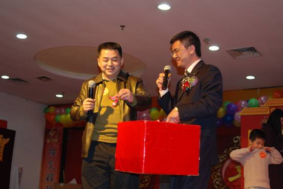 期間,各部門經理也輪流上臺,為大家奉獻愛心現金獎。
