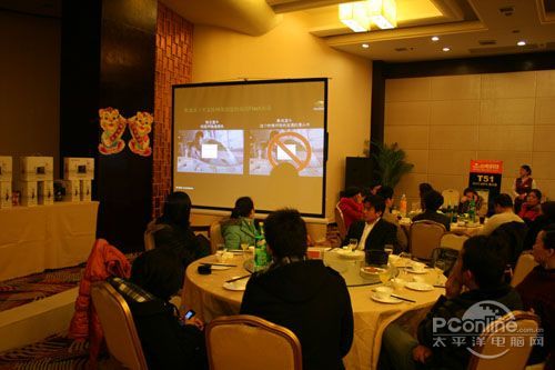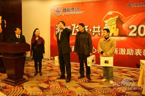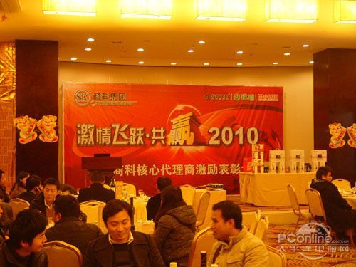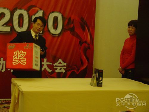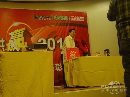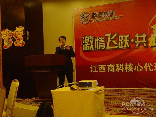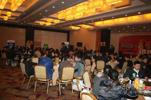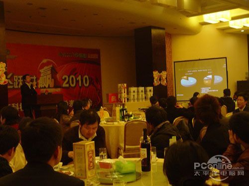 本次會議有眾多經銷商應邀赴會,更有來自NVIDIA和intel的嘉賓光臨現場,其中包括來自NVIDIA公司的彭華先生,以及INTEL公司的吳偉先生。而我們太平洋電腦網江西站作為到會的媒體代表,也被作為嘉賓介紹給大家。與上面的幾位重量級人物一起被主持人隆重介紹給廣大商家,筆者實在是感到有點汗顏!會議首先由NVIDIA公司的彭華先生為大家介紹阿凡達與NVIDIA的淵源(原來《阿凡達》出色的CG效果可是由NVIDIA的顯卡打造而成的)以及NVIDIA公司的新技術與政策。然后再由江西商科總經理吳暉先生講話,再后就是對2009年度成績突出的商科合作伙伴進行表彰頒獎(獎品非常豐厚哦,竟然是臺電上網本)。最后就是激動全場的抽獎活動了!