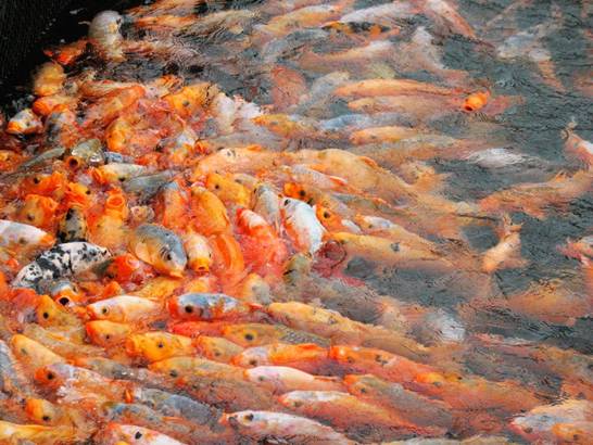 吉祥鎖 鎖島緊鄰魚島,魚島上有很多魚,我們準(zhǔn)備了些食物喂魚, 魚兒們?yōu)榱藫尩绞澄铮鼈償D作一團(tuán)。