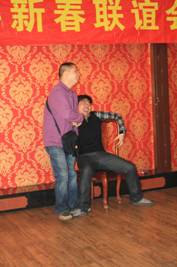 在玩搶凳子的游戲時(shí),上演了兩位產(chǎn)品經(jīng)理的精彩對(duì)決,十位選手參加,最后剩下的是銘瑄主板經(jīng)理周紅光和梅捷主板經(jīng)理李小剛,兩位經(jīng)理你搶我奪,最后周經(jīng)理用事實(shí)說明了一切,并用表情告訴我們,今年是我的,明年給你坐!看來,我們2011年的主板銷售一定會(huì)很好,從他們搶凳子的這種精神里知道了!