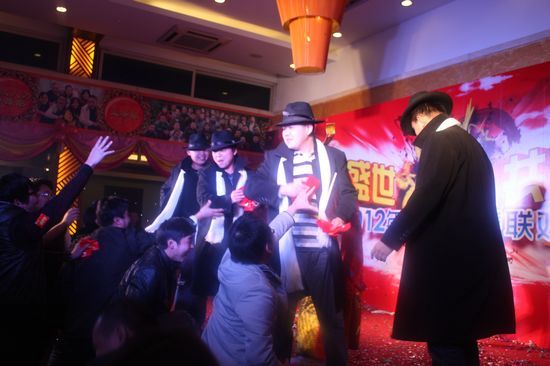 晚宴進(jìn)行到高潮時(shí),商科的財(cái)神閃亮登場(chǎng)了,與以往不同的是,今年財(cái)神身邊多了四位“兇悍”的保鏢。