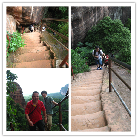 因天氣太熱,有些同事便在這里止步了,但還有不少的同事,繼續前進,目標細美寨。丹霞的山,都不是很高,但以為很容易爬,就大錯特錯了,一段快90度的山路嚇怕了不少女同事,看來丹霞山還真不容易爬啊。