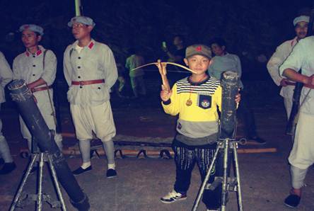 晚上我們到井岡山市區(qū),觀看紅軍劇場(chǎng)的井岡山大型實(shí)景演出。整個(gè)演出由600多名當(dāng)?shù)氐娜罕娧輪T參演,雖然演員都是業(yè)余的,但1個(gè)多小時(shí)的演出卻是感人肺腑。尤其是賀子珍把孩子托給老鄉(xiāng)大媽與孩子離別的這場(chǎng)戲,很多觀眾都流下了眼淚。演出的最后毛主席帶領(lǐng)紅軍離開井岡山,幾百人的紅軍隊(duì)伍,牽著騾馬,經(jīng)過觀眾席與大家道別后依次列隊(duì)劇場(chǎng)出口的兩旁,送觀眾出場(chǎng),與觀眾合影,感覺好像回到了那個(gè)軍民一家親的年代。