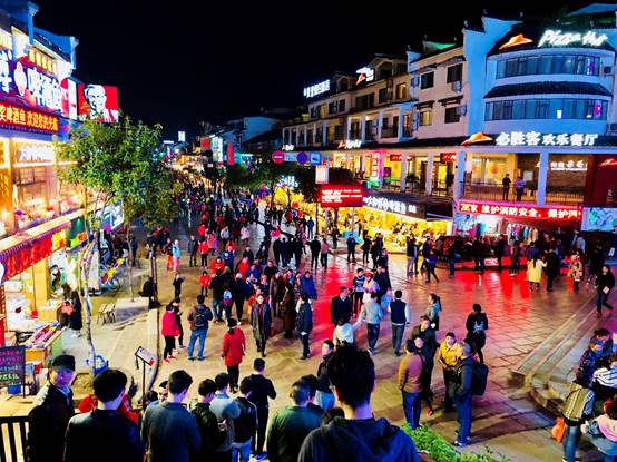 晚會在歡快的氣氛中結束,不過感覺有點意猶未盡呢~來陽朔當然少不了要去益田洋人風情西街啦,西街的異國風情全國聞名,越到深夜越發熱鬧,商販云集,人來人往好不熱鬧。
