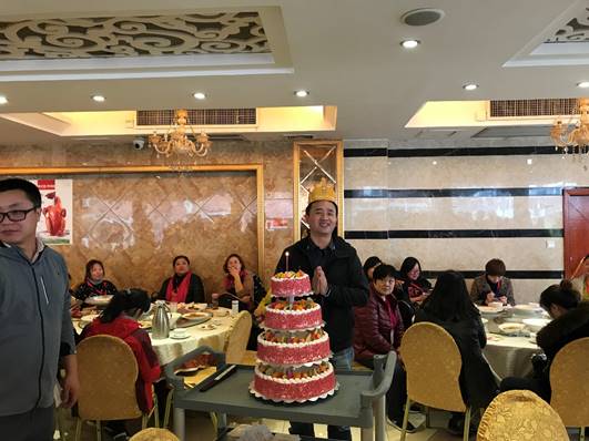 返程當天,恰逢是商科集團總經理孫總的生日,午飯期間,大伙們悄悄準備了生日蛋糕和小禮物,并送上生日歌和美好的祝福,現場歡聲不斷,連旁邊桌的朋友們都忍不住放下手上的美味,共同為孫總慶賀生日。