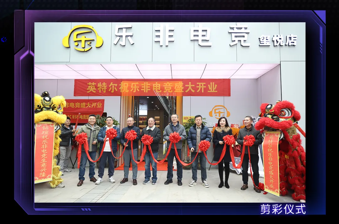 為慶祝“樂非電競”開業(yè),英特爾中國區(qū)渠道與合作伙伴業(yè)務(wù)部總經(jīng)理宗曄、英特爾中國區(qū)渠道銷售部總監(jiān)常國際、英特爾南區(qū)渠道銷售總監(jiān)張紅、銘瑄科技主板BU總經(jīng)理王榮攜手“樂非電競”負(fù)責(zé)人楊興忠和鄭華華進(jìn)行了簡單而隆重的剪彩儀式。