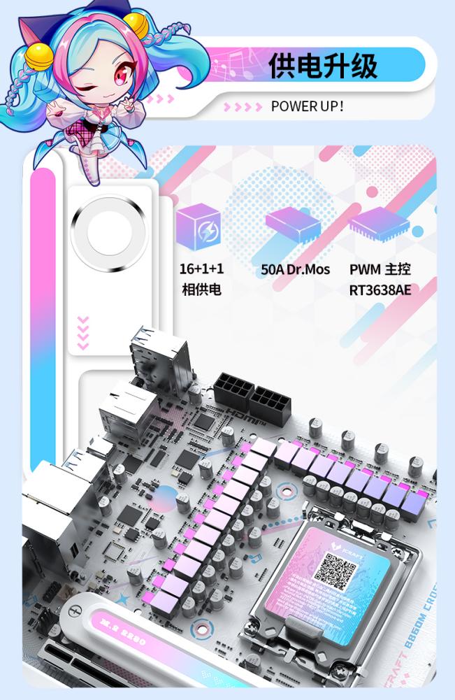 鐘愛Q版璦珈的用戶還可以選擇MS-iCraft B860M CROSS,主板配備LED小屏幕,通電后會呈現(xiàn)活力滿滿的小璦珈眨眼動畫,魅力滿分!
